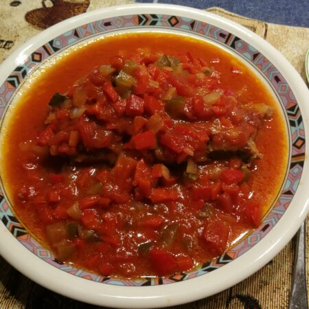 Paprika waschen, putzen und in kleine Würfel schneiden. Zwiebel abziehen und fein würfeln. Gewürzgurke in kleine Streifen schneiden. Etwas Olivenöl in Pfanne erhitzen und Schweinekotelett von beiden Seiten scharf anbraten. Mit Salz und Cayennepfeffer nach Geschmack würzen. Den Herd auf mittlere Hitze zurückschalten. Zwiebel, Paprika, Gurken und Tomatenstücke zum Kotelett geben. Das ganze etwa 10 Minuten sanft schmoren lassen. Eventuell noch etwas Wasser zugeben, falls das Gemüse zu trocken wird. Die gekochten Nudeln dazu servieren.