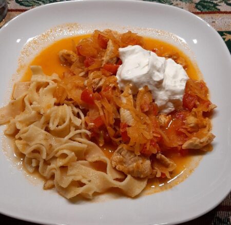 Szegediner Gulasch mit Putenfleisch und Sauerkraut