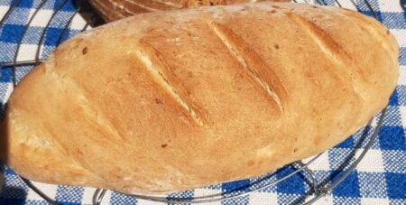 Alle Zutaten abwiegen und ca. 10 Minuten kneten. Den Teig 15 Minuten ruhen lassen. Nun den Teig rund formen, etwas längen und wieder 5 Minuten entspannen lassen. Den Teig nun zu einem Baguette formen, auf ein mit Backpapier belegtes Blech geben und für etwa 20 Minuten gehen lassen. Die Baguettes einschneiden, in den vorgeheizten Backofen bei 230° etwa 10 Minuten backen, dann auf 210° runterschalten und weitere 15 Minuten fertig backen.