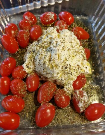 Lege den Ricotta möglichst im Ganzen in eine Auflaufform, wasche die Kirschtomaten und verteile sie drumherum. Beträufle alles mit 3–4 EL Olivenöl und würze kräftig mit Salz, Pfeffer und Kräutern. Dann schiebst du die Form für etwa 25 Minuten in den Backofen. Erwärme in einer Pfanne 1–2 EL Olivenöl und brate die Gnocchi darin bei mittlerer Hitze schön goldbraun und knusprig an. Nimm die Auflaufform aus dem Ofen, zerdrücke den Käse und gib die Gnocchi sowie reichlich frischen Basilikum hinzu. Dann vermischst du alles gründlich, bis du eine herrlich cremige, tomatige Masse hast. Mamma mia – das schmeckt sooo lecker!