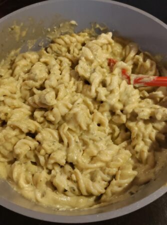 Die Pasta nach Packungsanweisung kochen. Den Rosenkohl in Salzwasser kochen. Nun den gekochten Rosenkohl zusammen mit dem Öl, der Creme Fraiche sowie den Gewürzen in einem Mixer pürieren. Ich gebe anschließend noch ein bis zwei EL Pastawasser dazu, das macht die Masse etwas cremiger. Nun die Nudeln abgießen und unter die Rosenkohlmasse geben. Gut vermischen und eventuell nachwürzen. Auf einen Teller geben und etwas Parmesankäse drüber geben.
