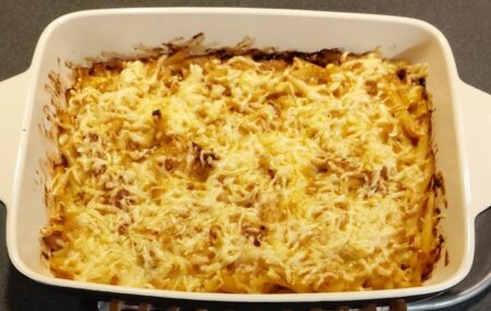 Die Makkaroni nach Packungsanweisung in Salzwasser al dente kochen. Abgießen und zur Seite stellen. Öffne die Thunfischdosen, lasse den Saft abtropfen und zerpflücke den Thunfisch grob mit einer Gabel. Erhitze das Olivenöl in einer großen Pfanne und brate die gehackte Zwiebel und den Knoblauch darin bei mittlerer Hitze an, bis sie glasig sind. Füge das Tomatenmark hinzu und lasse es kurz anrösten. Gieße dann die Sahne und die Gemüsebrühe dazu. Rühre alles gut um, würze mit Salz, Pfeffer und Oregano und lasse die Sauce einige Minuten köcheln, bis sie leicht eingedickt ist. Gib die abgetropften Makkaroni und den Thunfisch in die Pfanne mit der Sauce und mische alles gut durch, bis die Nudeln gleichmäßig mit der Soße bedeckt sind. Fülle die Makkaroni-Thunfisch-Mischung in eine gefettete Auflaufform. Bestreue alles mit dem geriebenen Käse und stelle den Auflauf für etwa 20 Minuten in den Backofen bei 180° bis der Käse goldbraun ist.