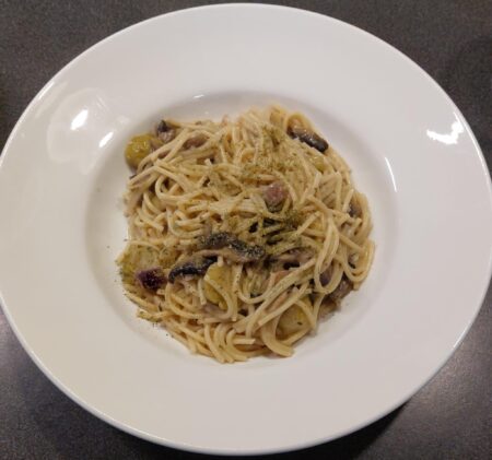 Die Nudeln nach Packungsanleitung al dente kochen. Währenddessen den Rosenkohl putzen und halbieren. Säubere die Pilze und schneide sie in Scheiben. Ziehe Zwiebel und Knoblauch ab und schneide beides in Würfel. Koche den Rosenkohl für 5 Minuten in leicht gesalzenem Wasser. Gieße ihn danach ab und stelle ihn beiseite. Erhitze das Olivenöl in einer Pfanne. Brate die Zwiebel und den Knoblauch darin glasig an. Füge die Champignons hinzu und brate sie ebenfalls leicht braun an. Gib den vorgegarten Rosenkohl in die Pfanne und brate ihn kurz mit. Würze alles mit Salz und Pfeffer. Lösche das Gemüse mit der Gemüsebrühe ab und rühre die Sahne unter. Lasse die Soße bei mittlerer Hitze 5 Minuten köcheln, bis sie leicht eindickt. Füge die Nudeln zur Soße hinzu. Verrühre alles gut miteinander und serviere die Pasta mit frischer Petersilie.